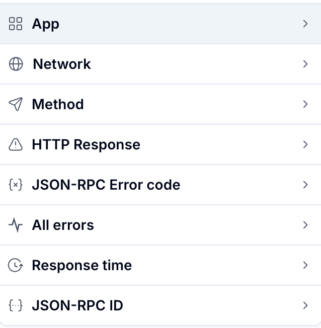 - Transparency and control: You gain visibility into every JSON-RPC request sent through Alchemy's infrastructure, including successes, failures, and errors, helping identify bottlenecks or misconfigured requests.