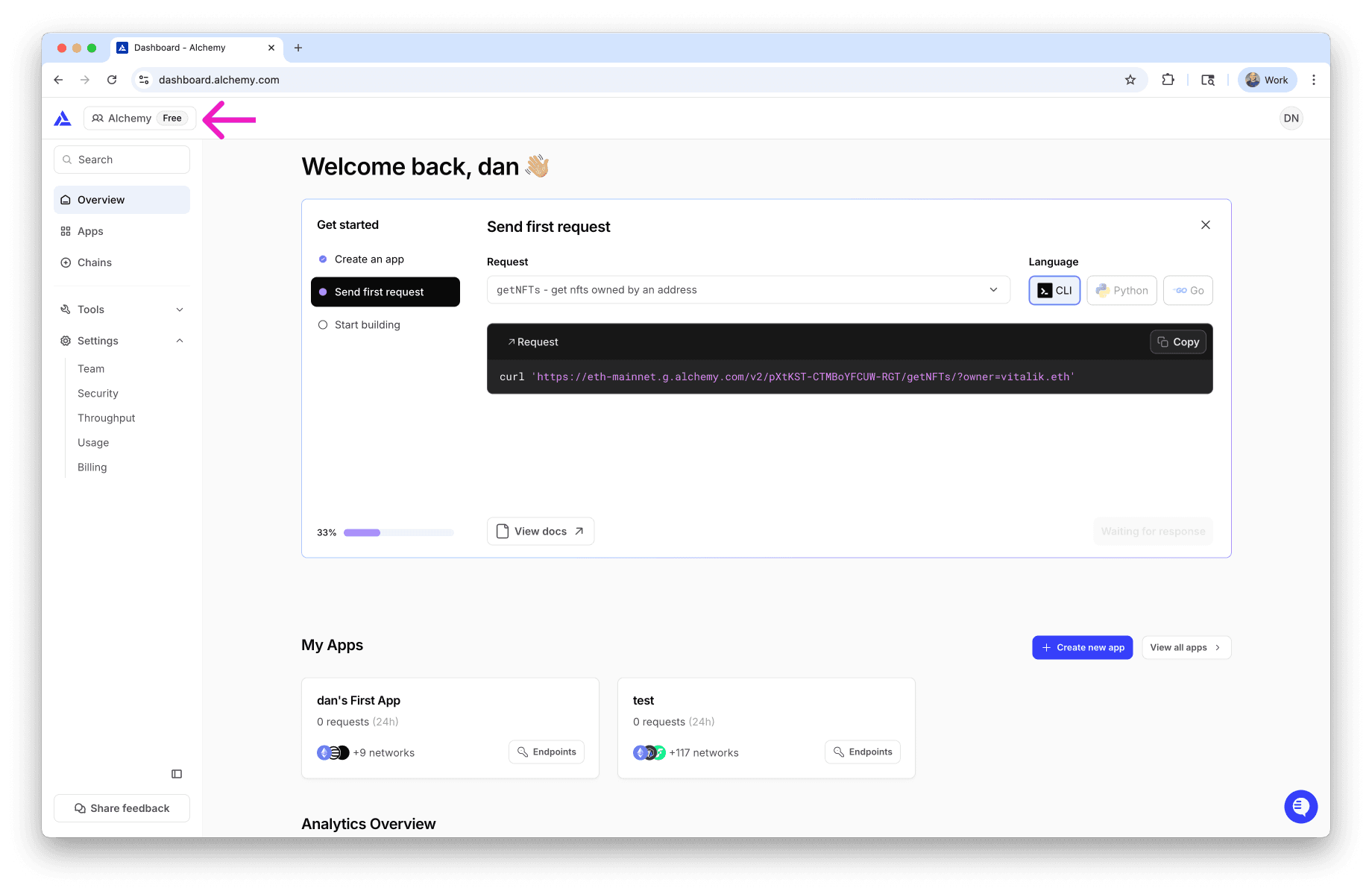 π New to Alchemy? Start for free by creating an Alchemy account, then follow this guide to get your API Key!