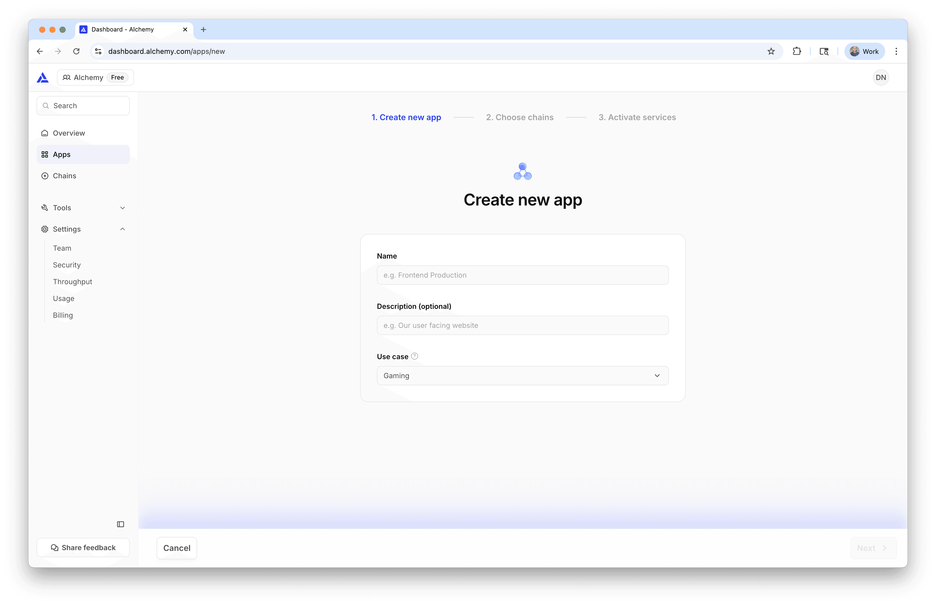 Next, you can choose a chain or multiple chains to be supported on your app.
