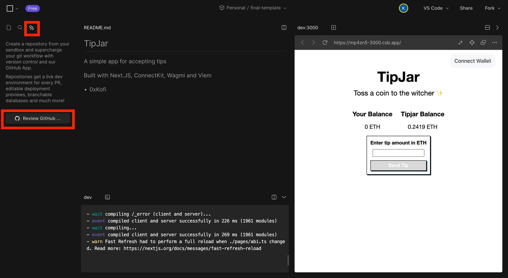 In this section, we will explore how the starter code works. Then you will fork the template on CodeSandbox and run it.
