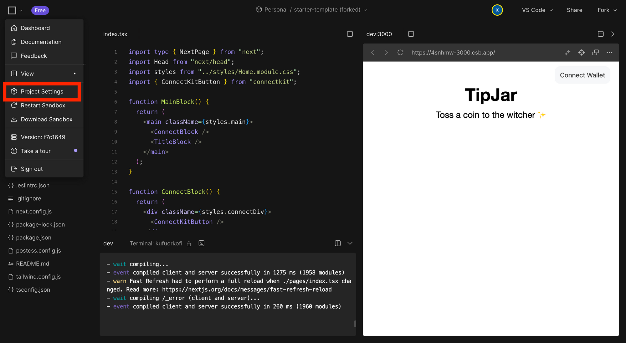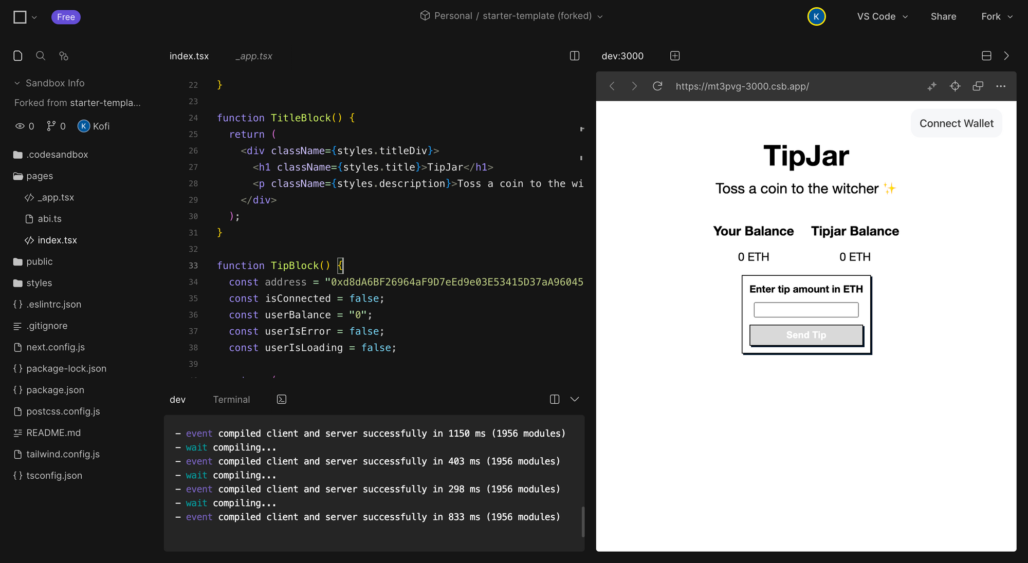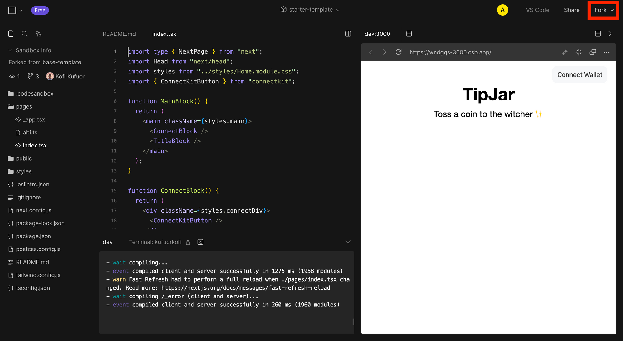 Action: Fork the starter template on CodeSandbox and run it ⚡
