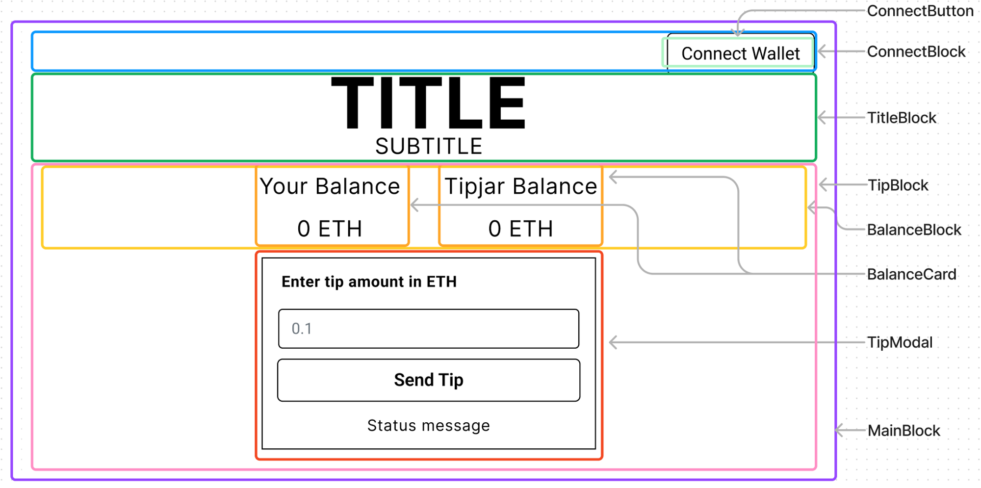 imported from the ConnectKit library. Users connect their wallets to the app using this button.TitleBlock