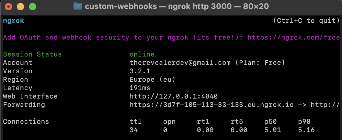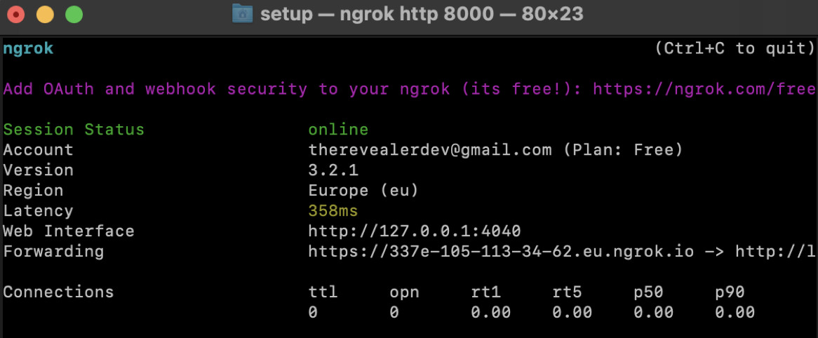 Connect the Ngrok account by running the following command Ngok authtoken AUTH_TOKEN.