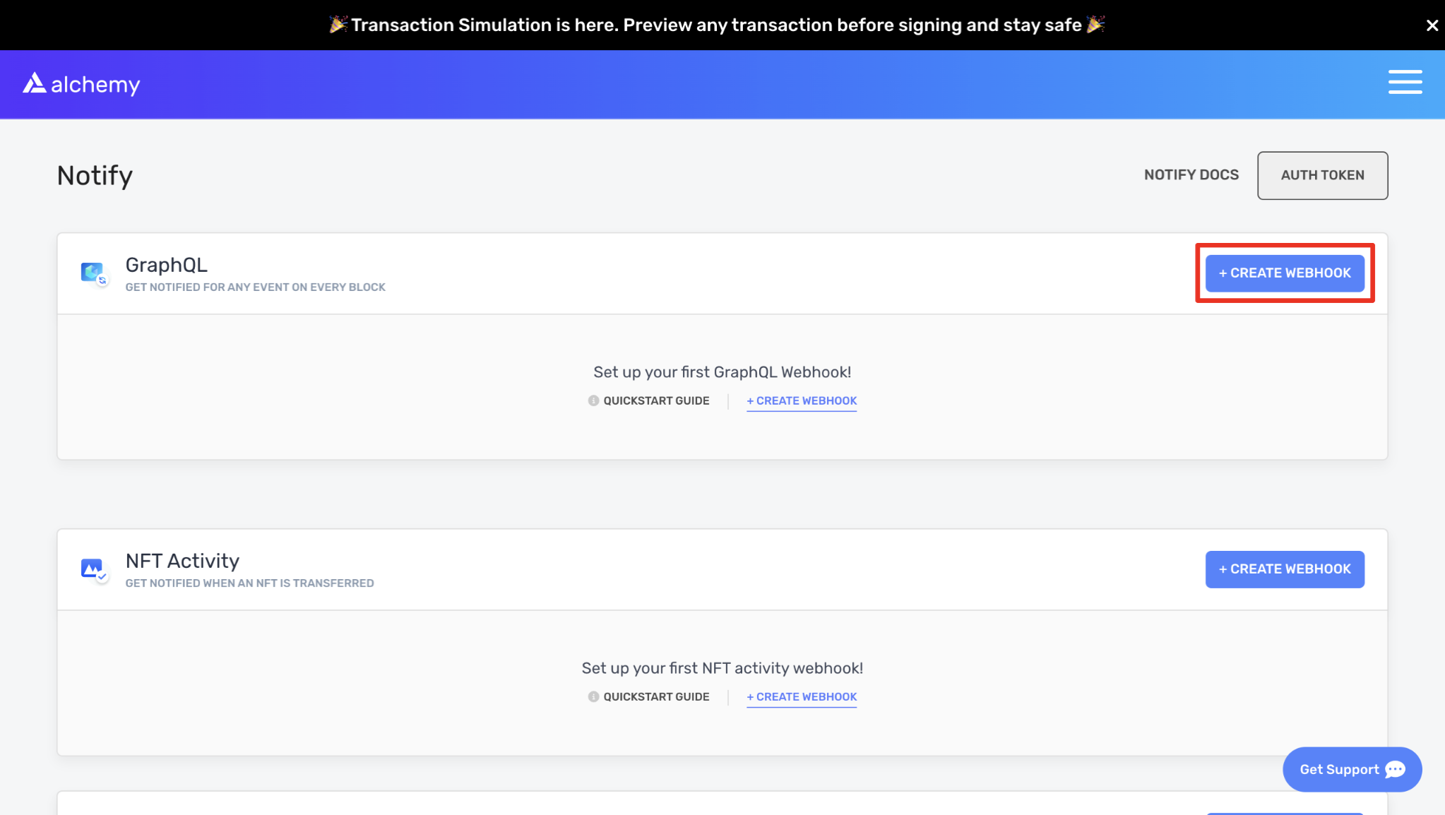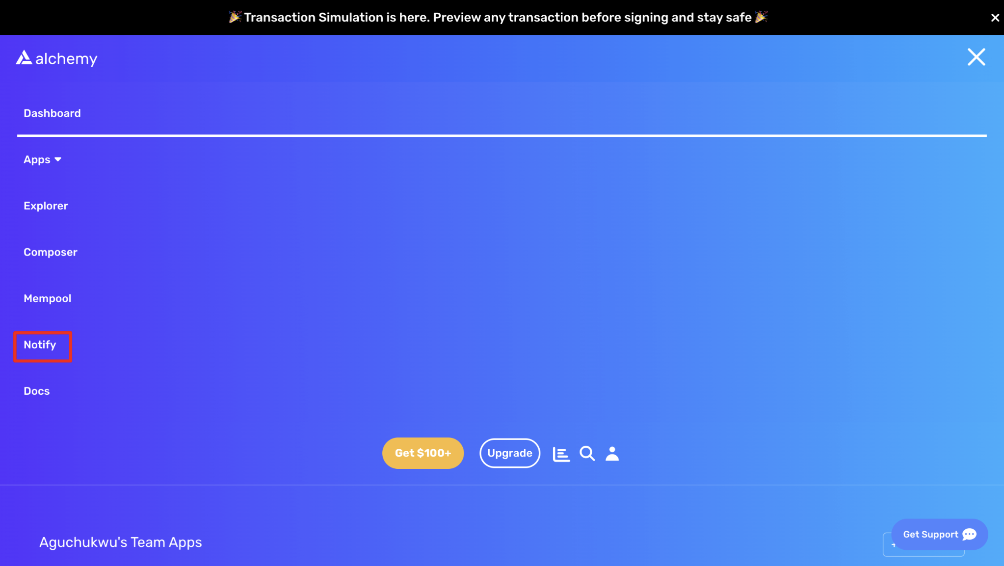 Next, return to the Alchemy dashboard and click on the notify tab.