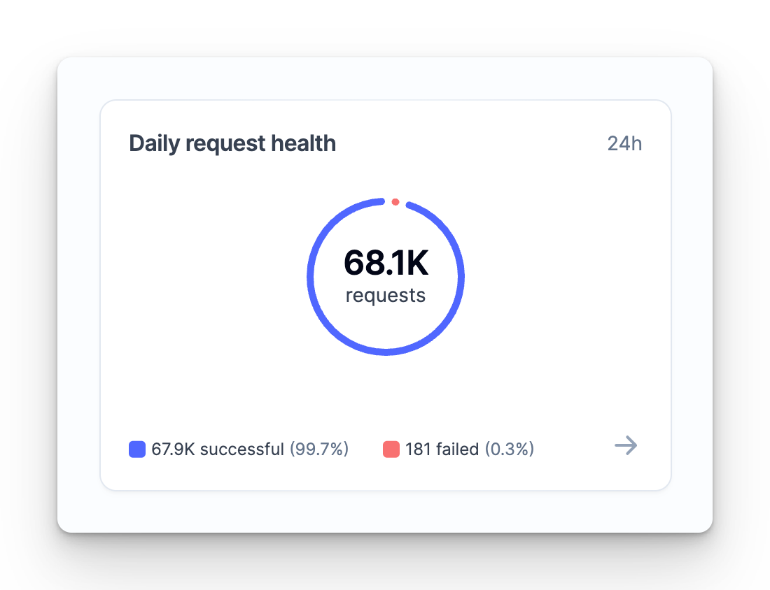 The dashboard includes various charts that indicate the number of successful or failed request across your applications. A few examples of these include: