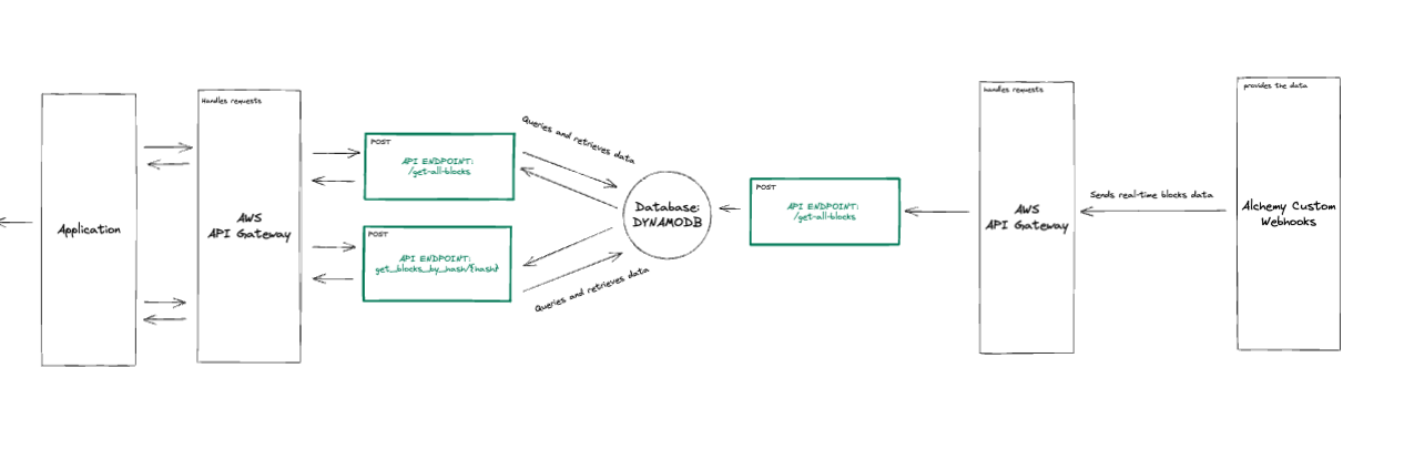 The Alchemy custom webhook we set up will now send real-time blockchain data to your /store-block-data API endpoint that will then take care of processing and storing your data in the Dynamo instance we’ve created. The GET /get-all-blocks and /get-all-blocks-by-hash endpoints we’ve created will make your data accessible querying it from the database.