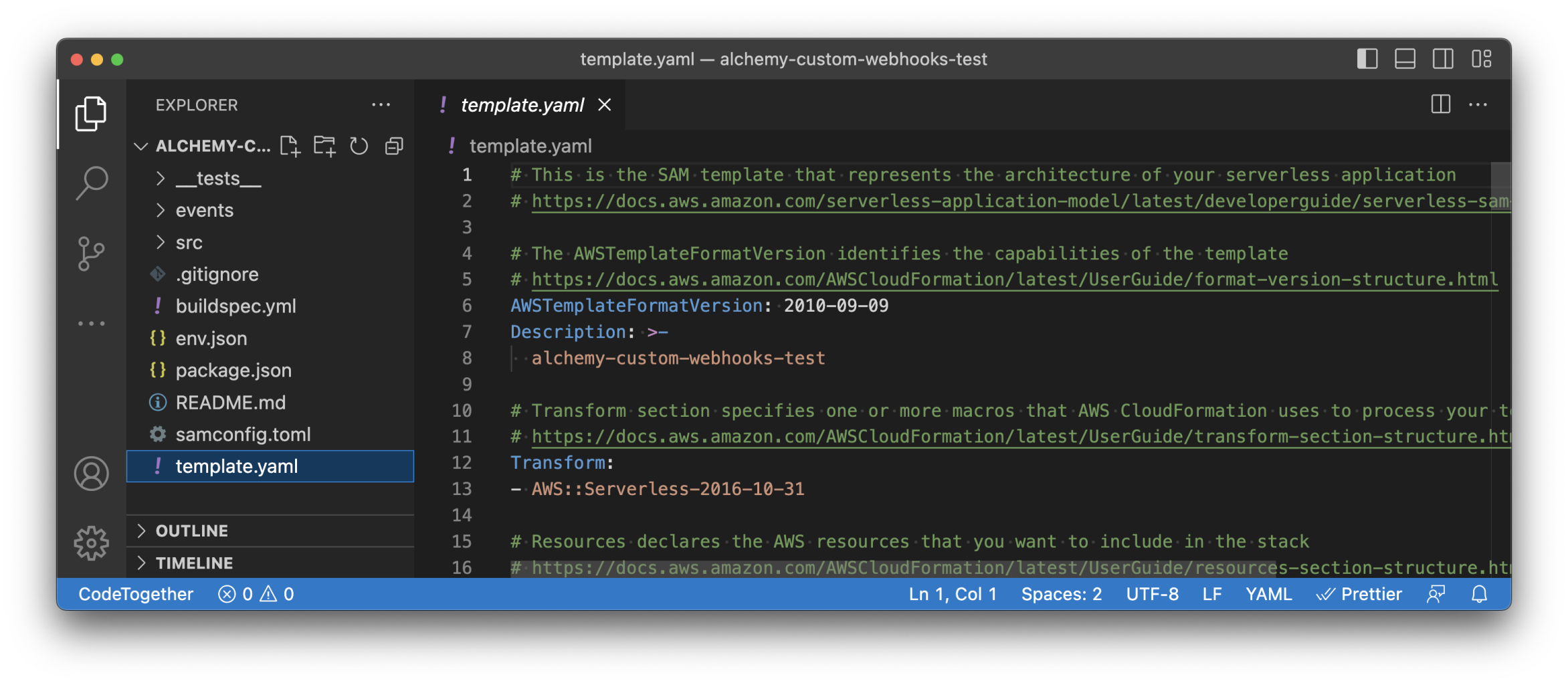 cd alchemy-custom-webhooks-testand then open the project up in an IDE of your choice, we are using VSCode for which the command iscode .