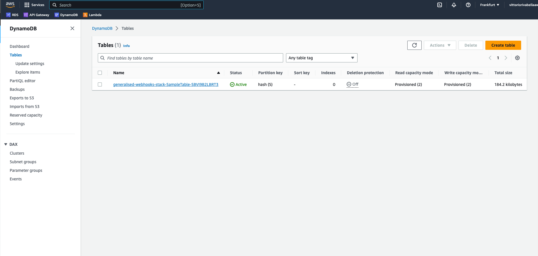 To verify everything is working and that the data is being saved to the DynamoDB, click “test webhook”.