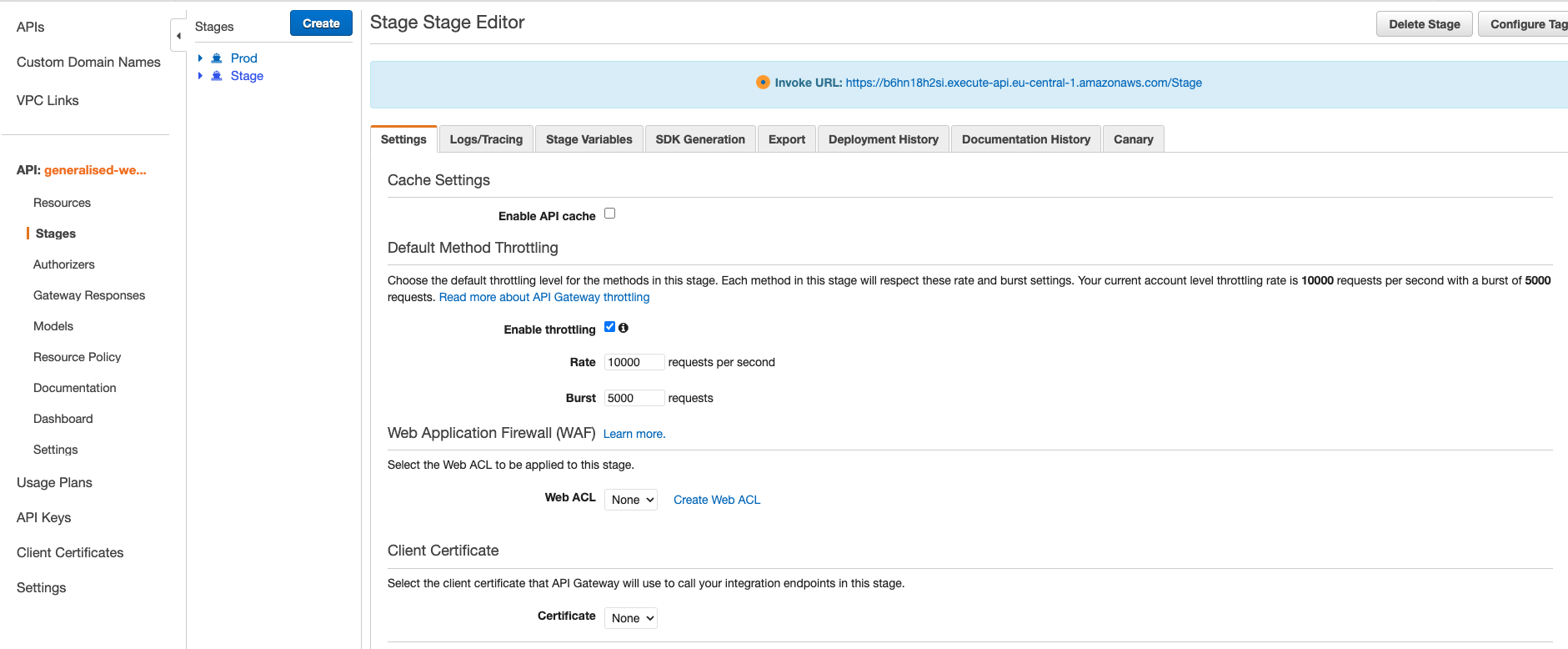 Make sure to not copy-paste the example root+endpoint above. You’ll need to get your endpoint found on the API gateway stages page and append the store-block-data path to it.