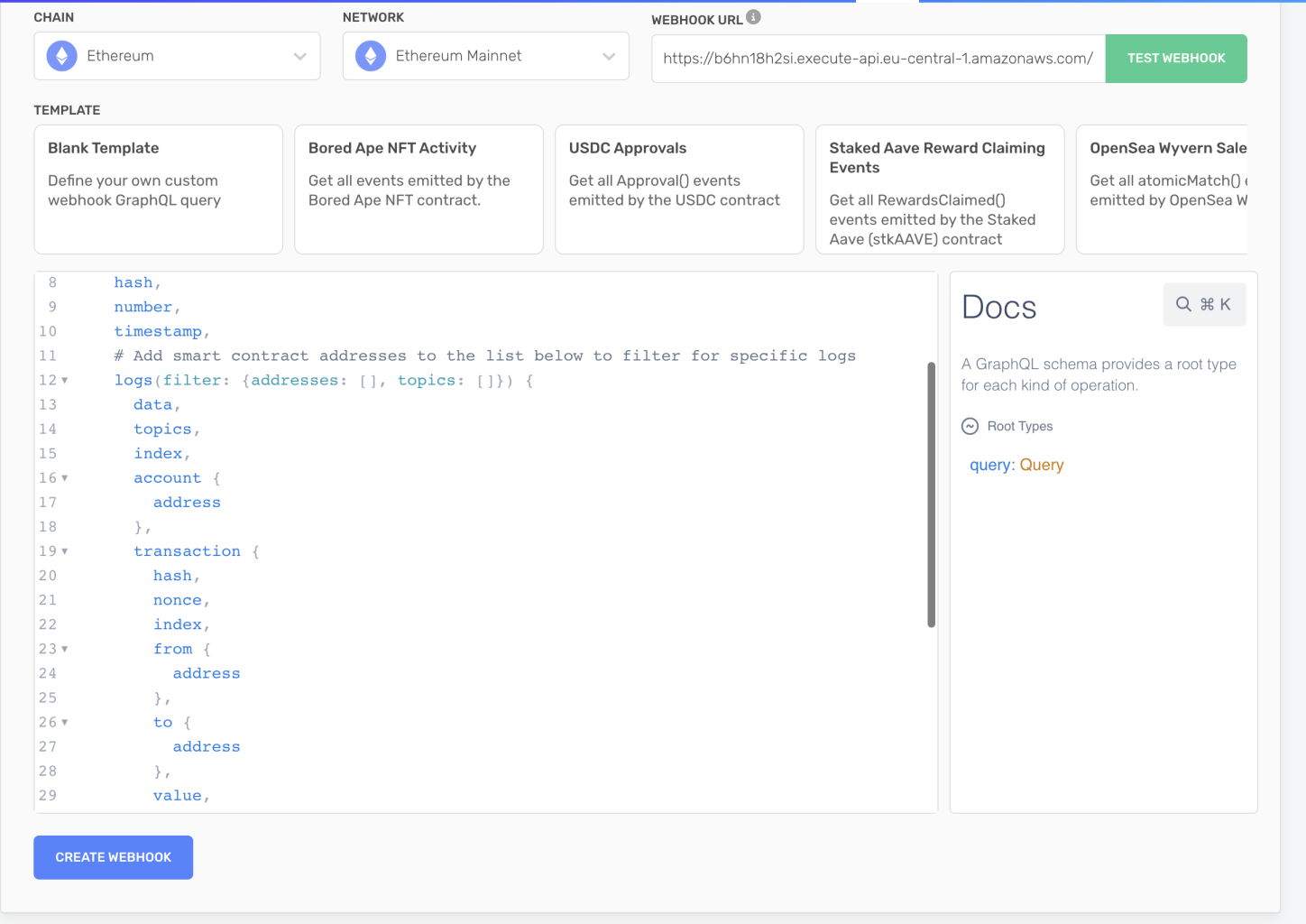 Creating a custom webhook to feed your database or application with real-time blockchain data, is surprisingly easy.