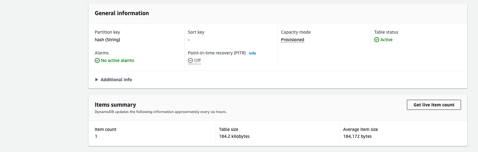 Then click on the DynamoDB instance we’ve created before using SAM: