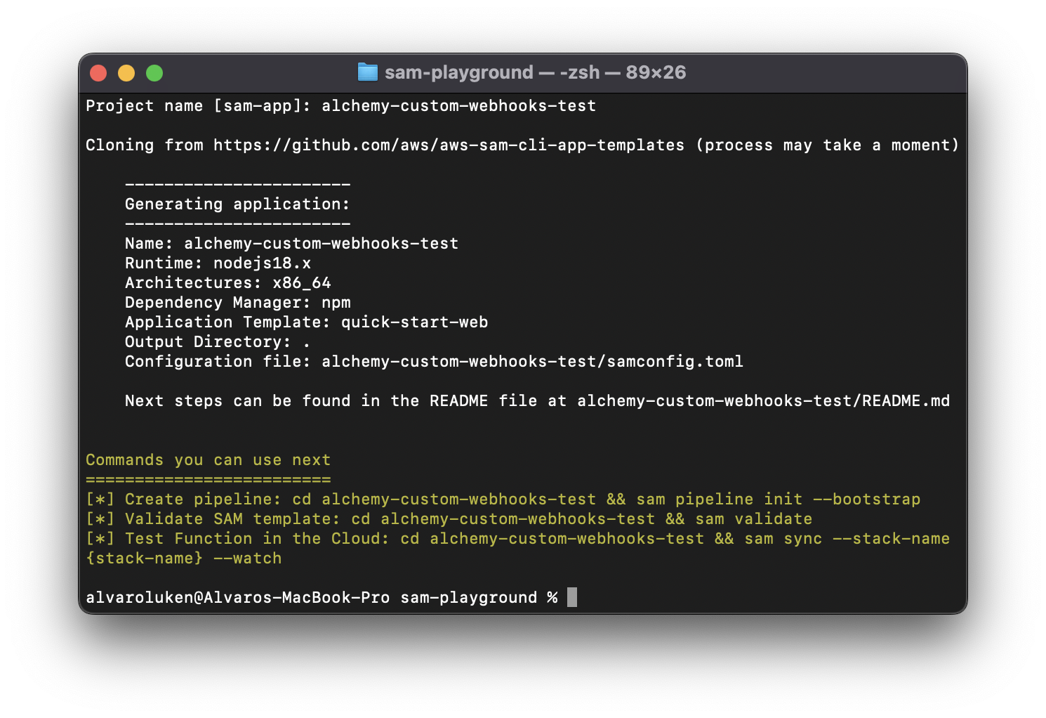 Now that we have completed modifying our Lambda functions, it’s time to deploy our Serverless infrastructure on AWS and finally create our Custom webhook using the Alchemy dashboard.