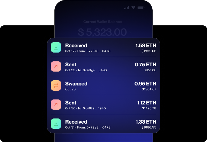 Ergonomic and 100x faster than alternatives. One request to retrieve all historical transaction activity, including internal transfers.